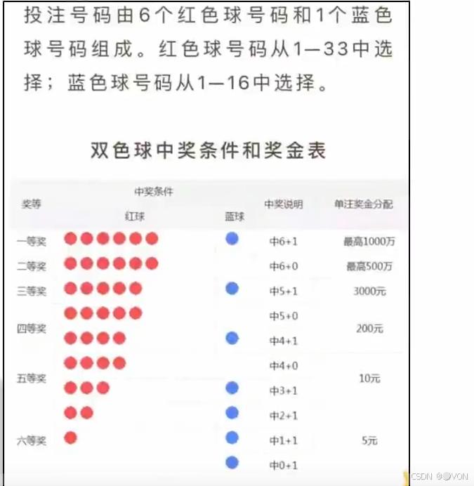 //规则:号码由六个红球和一个篮球组成,红球号码1-33,篮球1-16.
