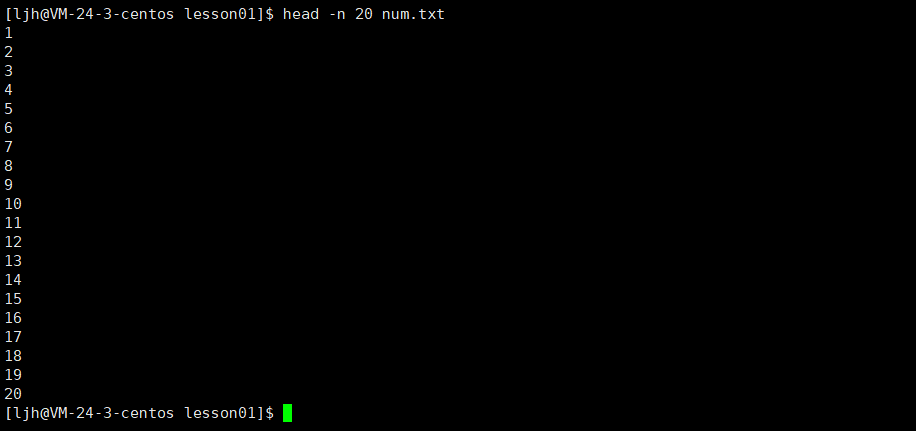 -n <行数> 选项,例如 head -n 20 file.txt 表示显示 file.txt 文件的前 20 行;也可使用 head -<行数> 这种简化写法,如 head -20 file.txt,效果与 head -n 20 file.txt 一致。-c <字节数>:按字节数显示文件开头的内容,比如 head -c 100 data.bin 表示显示 data.bin 文件开头的 100 个字节内容。-q 或 --quiet 或 --silent:静默模式,当同时处理多个文件时,不显示文件名,例如 head -q file1.txt file2.txt 只会输出文件内容,不会在输出前加上文件名标识。-v 或 --verbose:详细模式,在输出每个文件内容之前,先输出文件名,若同时处理多个文件,能清楚知道当前输出内容来自哪个文件,如 head -v file1.txt file2.txt。演示: