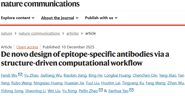 Wu, F., Zhao, Y., Wu, J. et al. De novo design of epitope-specific antibodies via a structure-driven computational workflow. Nat Commun (2025).