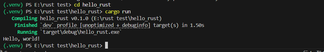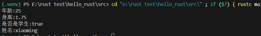 cargo run第一次运行会编译代码,之后会直接运行,终端会输出: