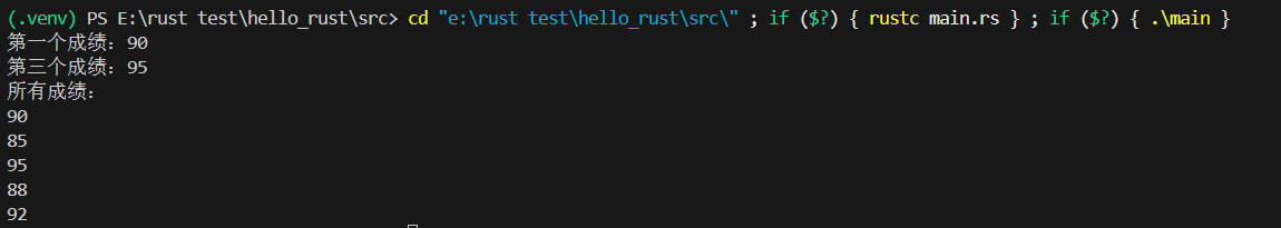 println!("第一个成绩:{}", scores[0]); // 输出:90