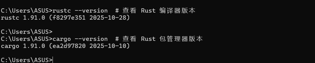 rustc --version # 查看 Rust 编译器版本