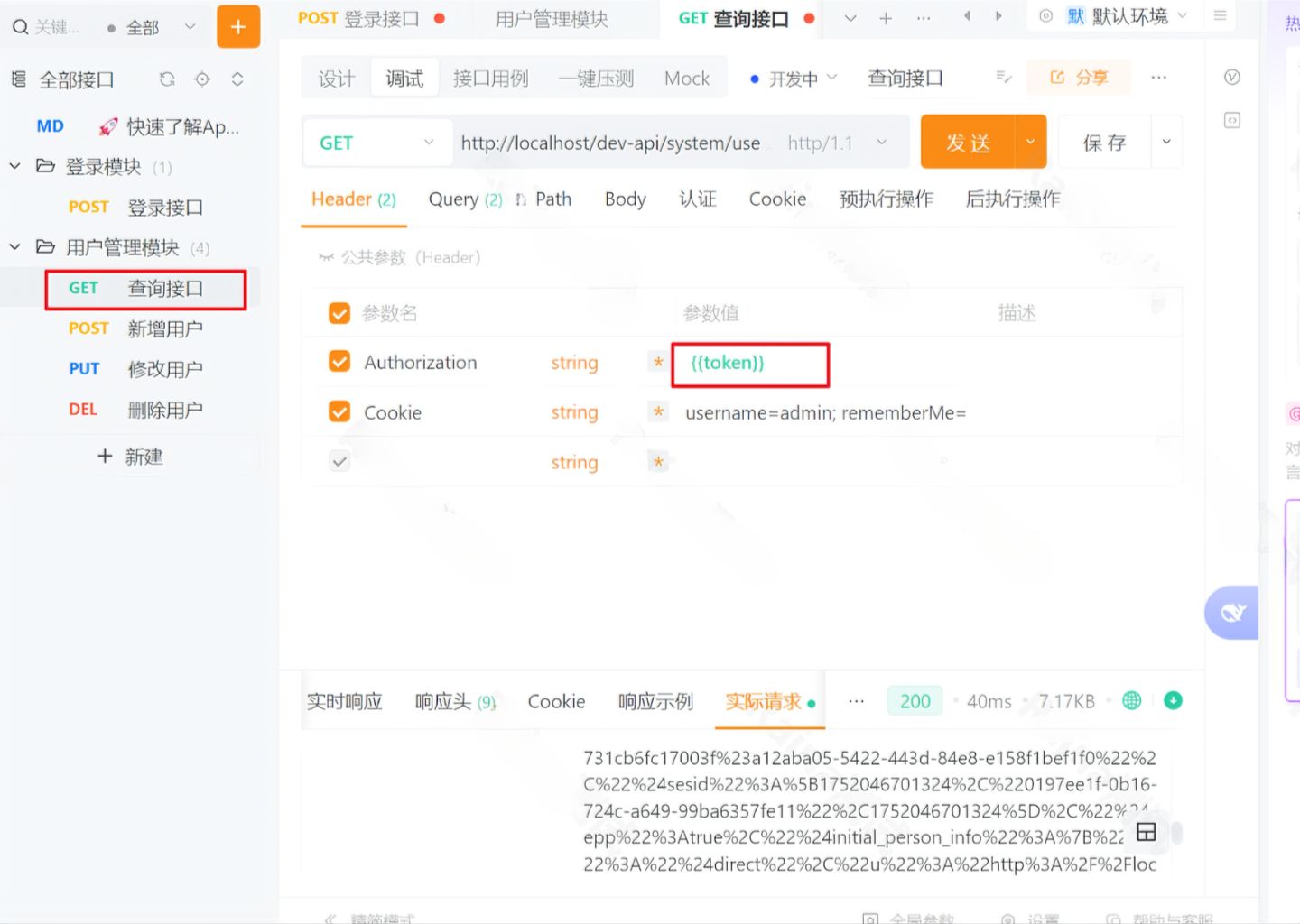 直接把刚刚提取到环境变量里面的字段赋值给对应的字段就好了;这样就实现接口串联啦!