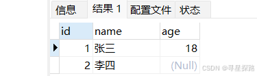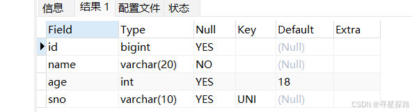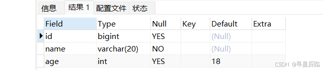 );插入⼀条记录,不指定年龄的值时列使用了默认值