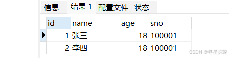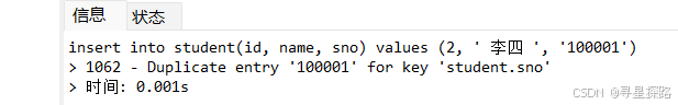 insert into student(id, name, sno) values (2, ' 李四 ', '100001');