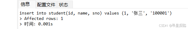 insert into student(id, name, sno) values (1, '张三', '100001');