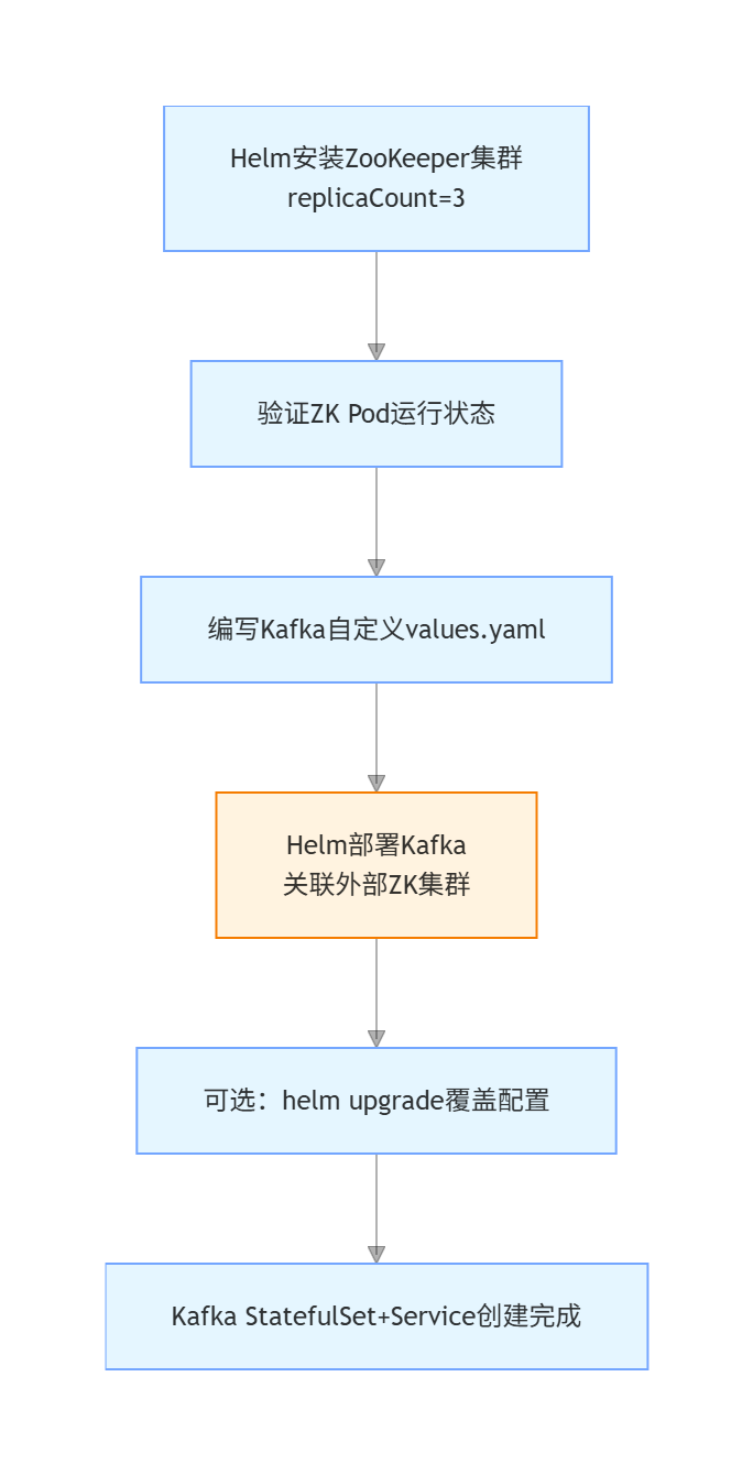 Kafka 需要依赖 ZooKeeper 来管理集群元数据。我们可以使用 Helm 来安装 ZooKeeper: