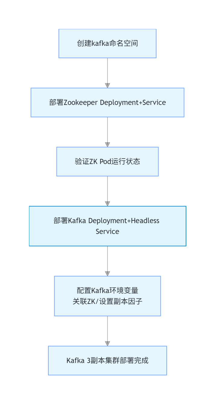 kubectl apply -f zookeeper-service.yaml接下来,部署Kafka集群。这里我们部署一个包含3个副本的Kafka集群。