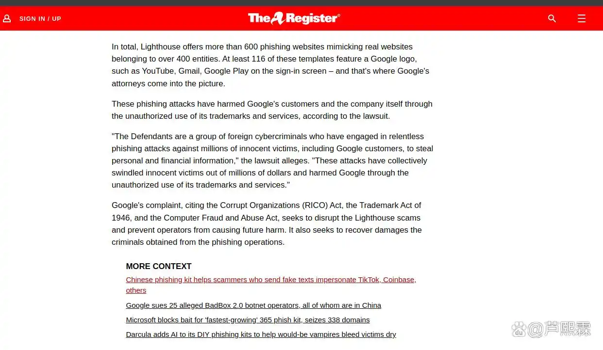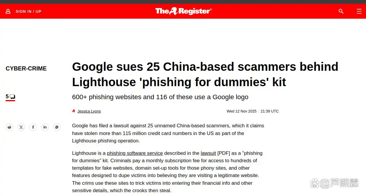 关键词:钓鱼即服务;Lighthouse;Google诉讼;短信钓鱼;跨境网络犯罪;零信任安全