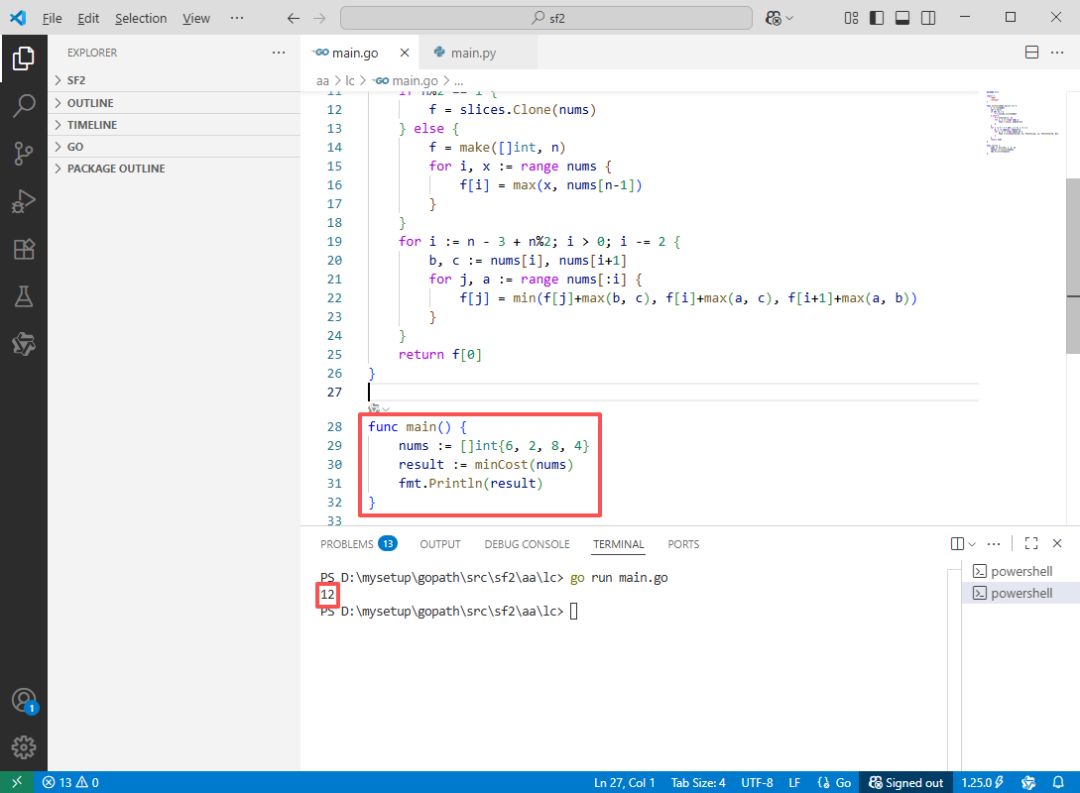 f(长度n),以及一些常数变量。slices.Clone(复制数组),但只复制一次,所以空间为O(n)。因此,总的时间复杂度为O(n²),总的额外空间复杂度为O(n)。