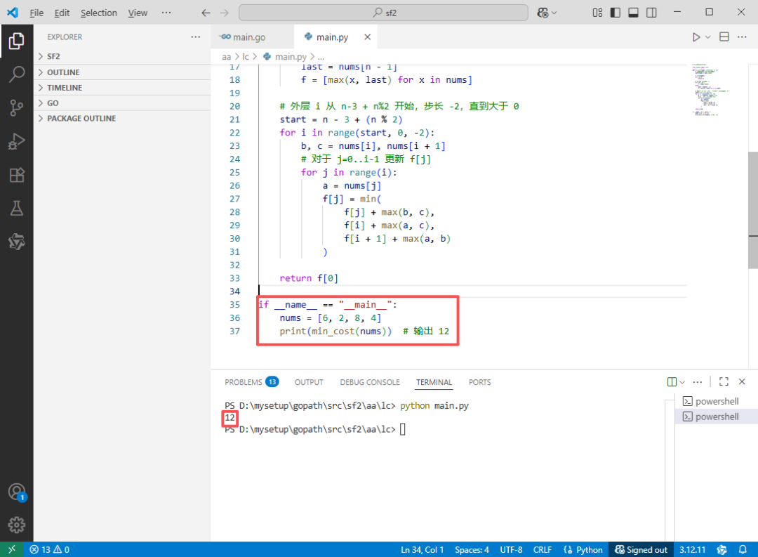 所以取最小值12,更新f[0]=12。根据题目解释: