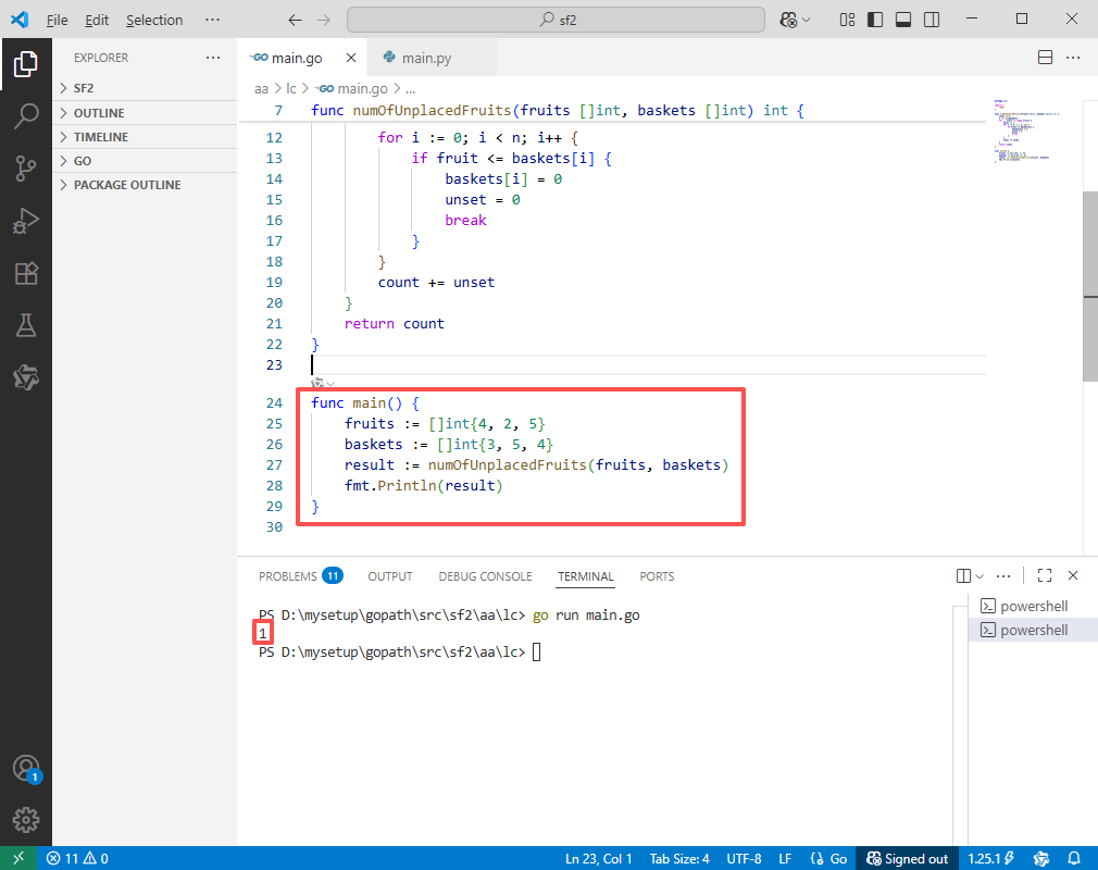 result := numOfUnplacedFruits(fruits, baskets)