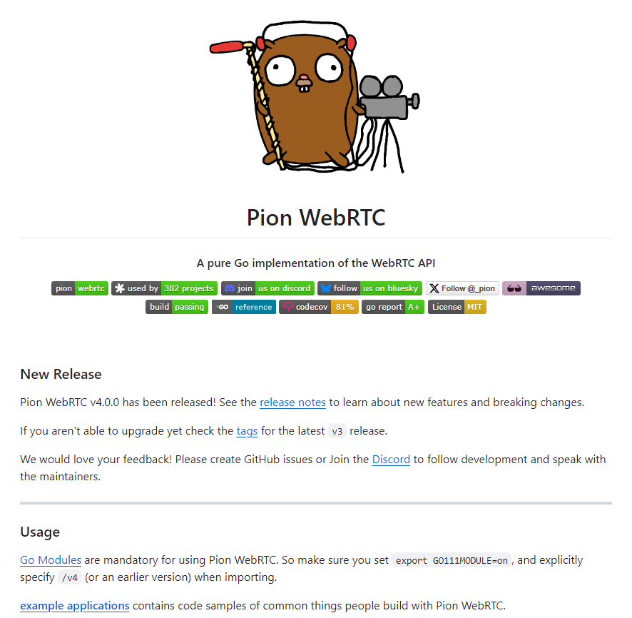 近日,WebRTC Go 实现库 pion/webrtc 发布了 v4.1.5 版本(2025年10月4日),本次更新在功能、性能和兼容性方面进行了多项改进,同时修复了一些潜在问题。以下是具体更新内容说明: