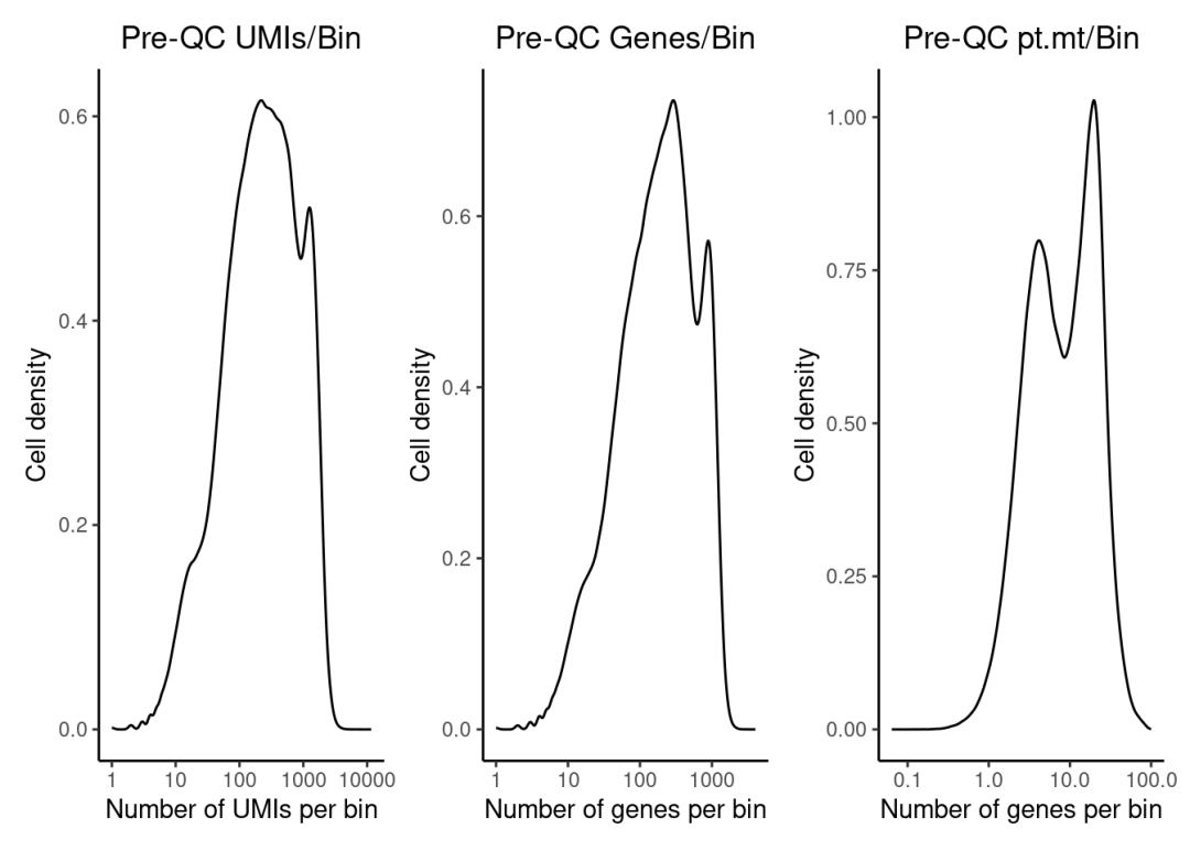 ggtitle('Pre-QC UMIs/Bin') +