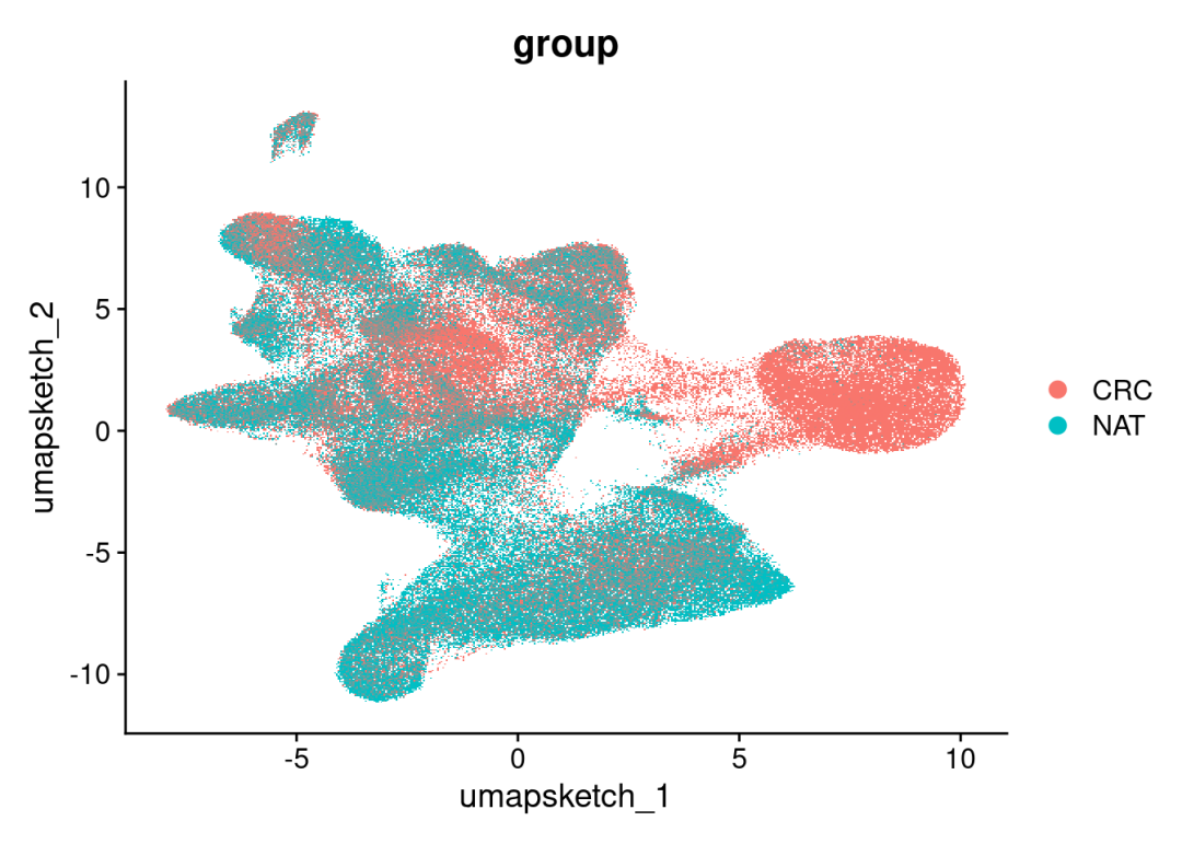 DimPlot(CRC_merge, reduction = "umap.sketch", group.by = 'group')