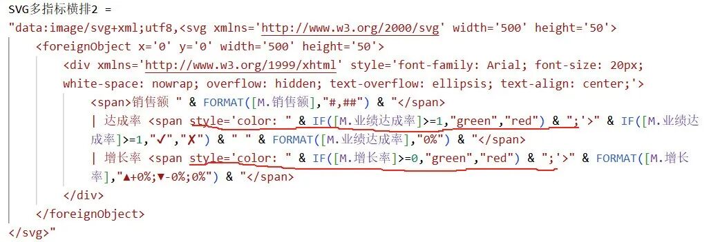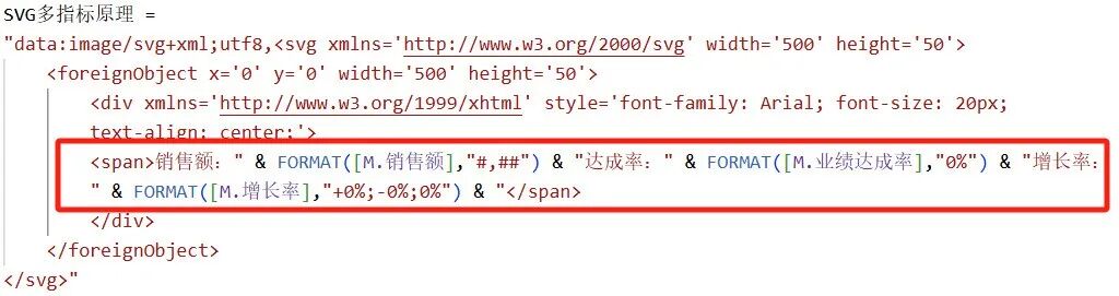 </svg>"含义为SVG图像包裹HTML文本。当指标需要单排展示时,可以把上方度量值中的指标内容换位多指标文本串联:
