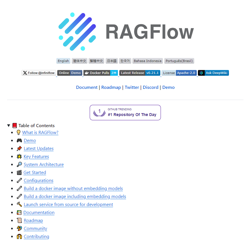 ragflow v0.21.1 是一次功能与稳定性双提升的重要版本,特别是在多模态解析、知识库管理、管道可视化以及管理端能力方面均有明显升级。此外,UI 优化和文档的完善也让整体使用体验更为顺畅。对于使用 RAGFlow 进行知识检索、文档解析及智能应用构建的开发者来说,该版本的更新值得尽快升级体验。