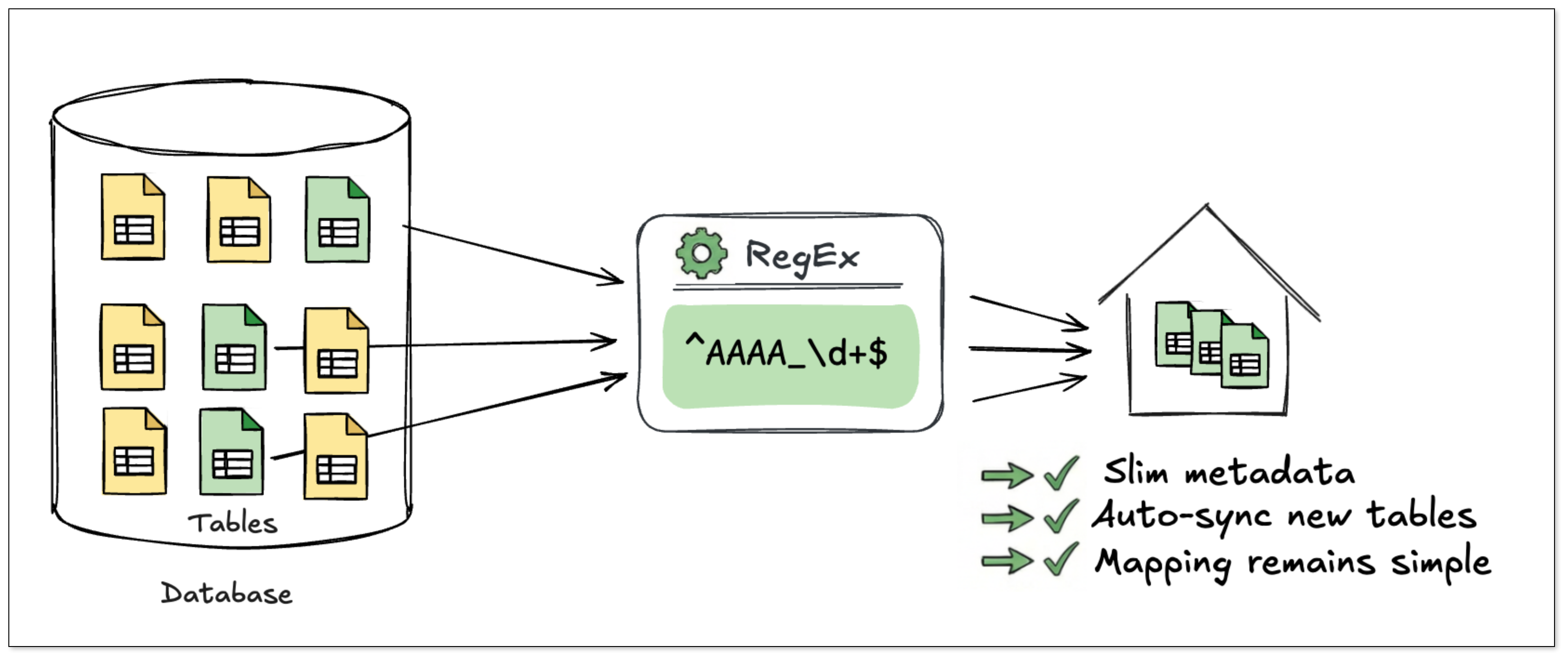 从本质上看,以上两种方式都是基于枚举的思路,即同步任务中必须明确指定具体的表,表越多,元数据越大,维护成本越高。