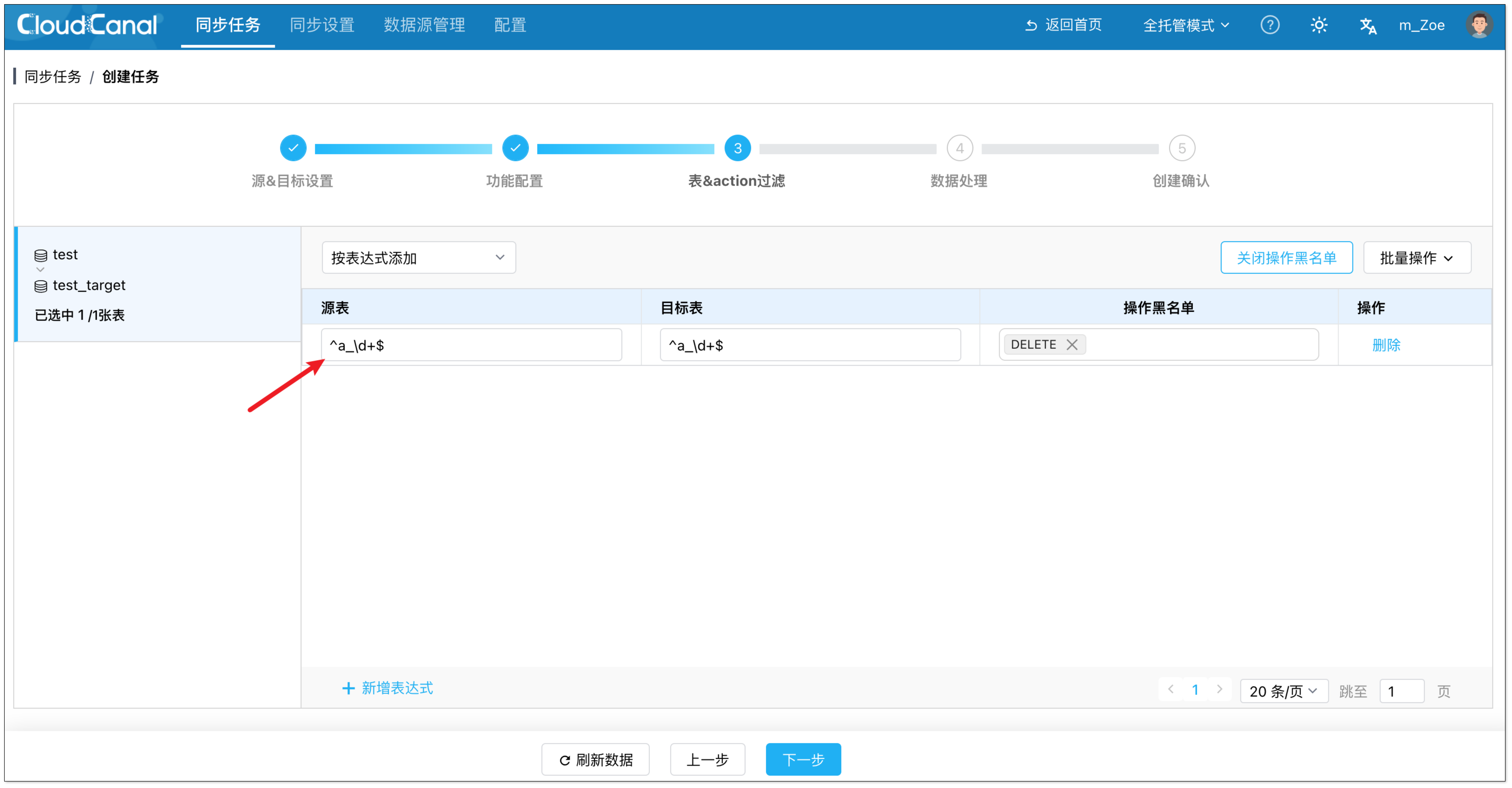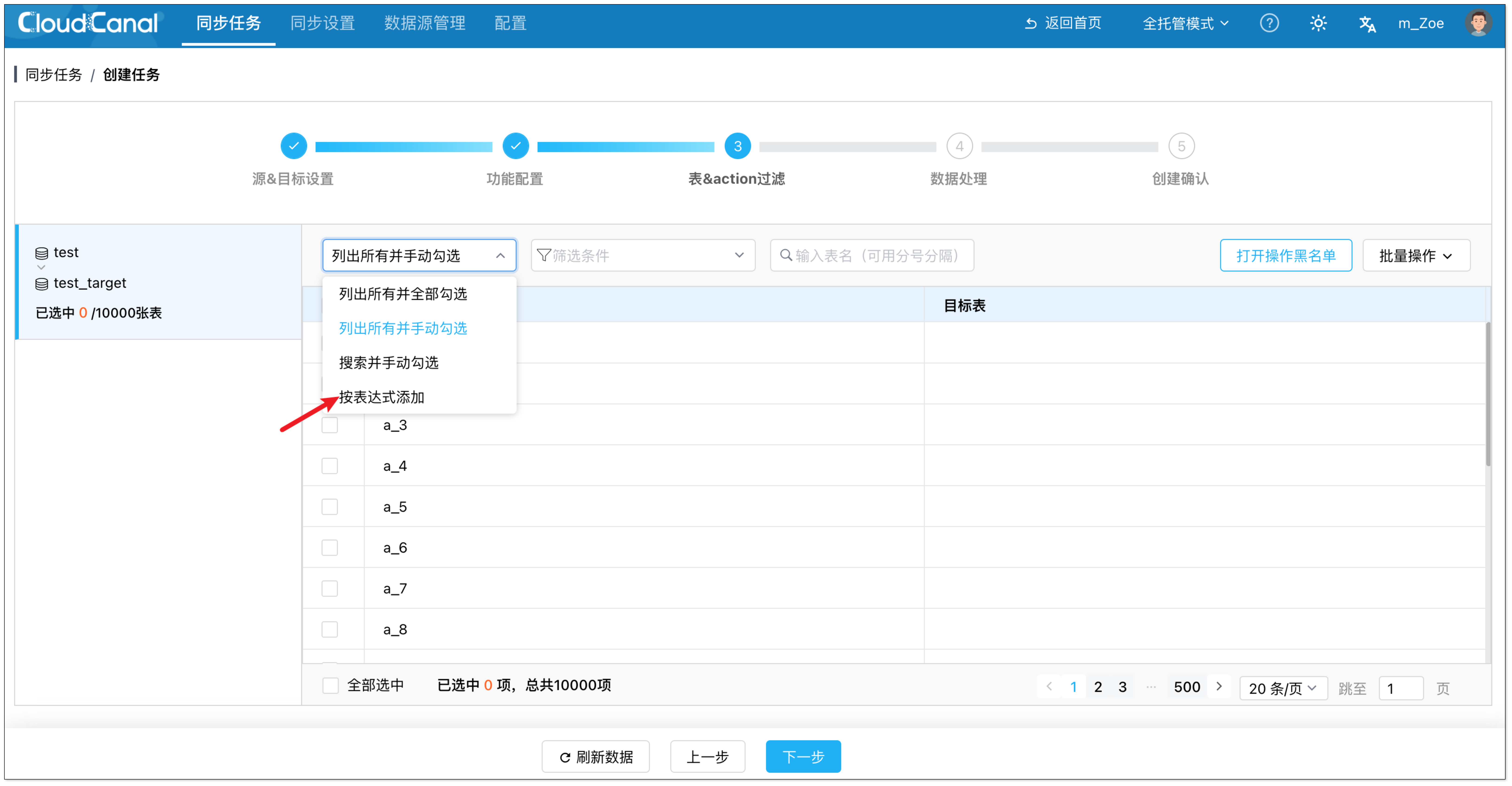 下面通过一个简要的操作流程,展示如何用一条表达式,迁移同步一万张表。