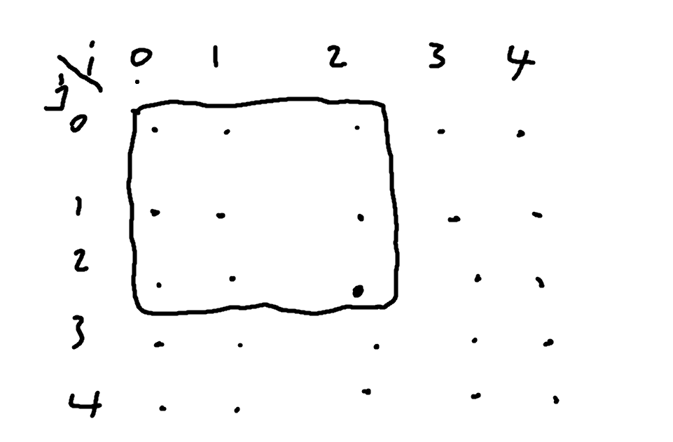 而二维前缀和就是从(0,0)位置到(i,j)位置的这个面积的和,就像下图画的那样,如果prefix[2][2]就是这个矩形 里的数的和