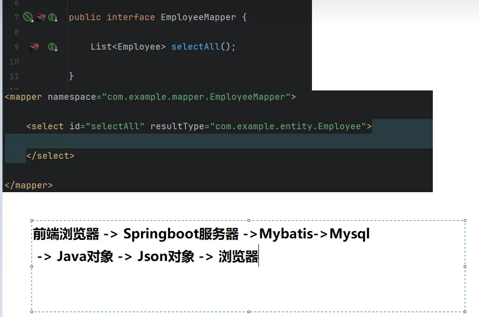 </mapper>namespace对应的就mapper的接口的全限定类名,方法名对应<select>或<update>的id