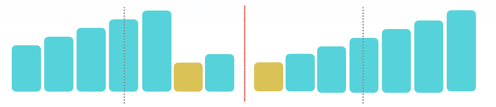 下图都满足最左边 < 中间,但是左图最小值在后面,右图最小值在前面。