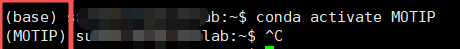 通过conda activate your_name来使用自己创建的环境,我之前创建的环境名是MOTIP,那么我输入