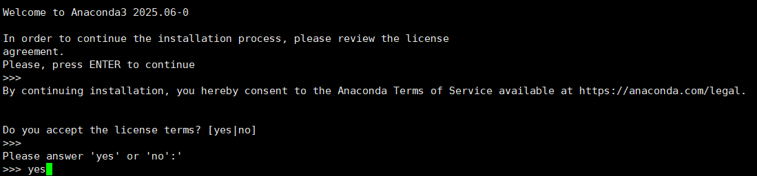 bash Anaconda3-2025.06-1-Linux-x86_64.sh