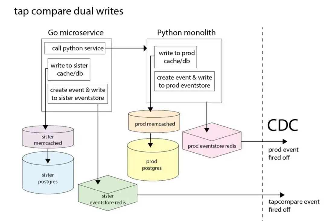 在双重写入后进行 tap-compare 验证(来源:Reddit 工程帖子)