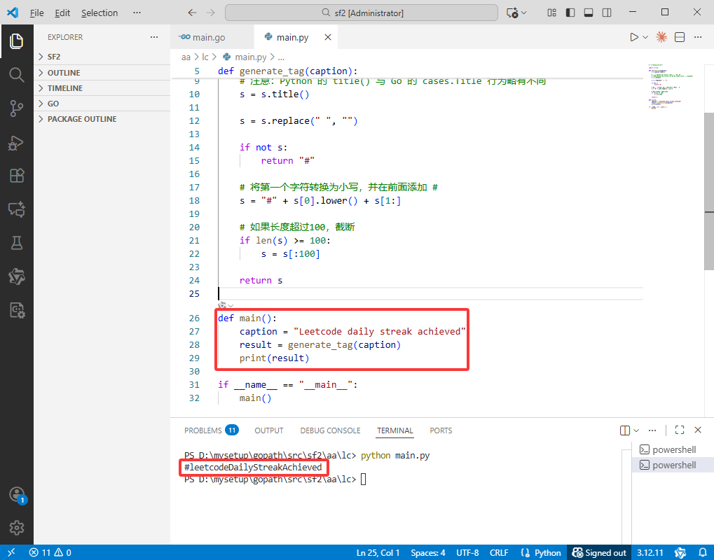 输出: "#leetcodeDailyStreakAchieved"。