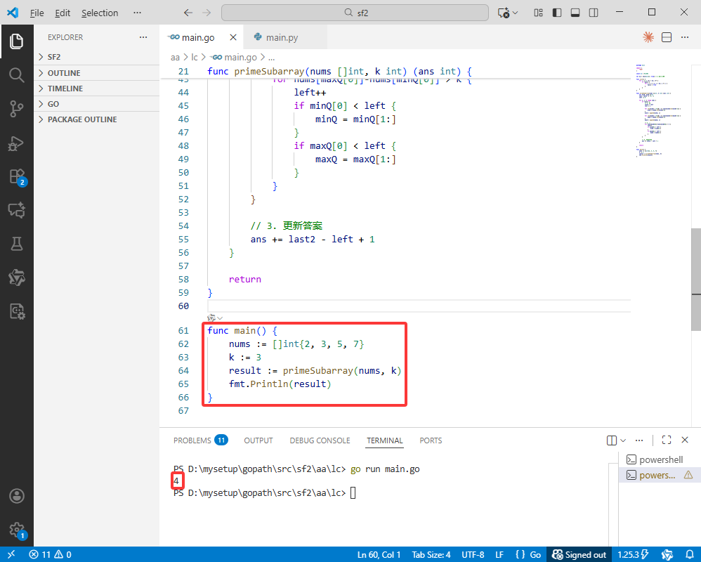 该Go语言程序用于统计满足特定条件的连续子数组(子序列)数量。以下是大体过程的详细分步描述: