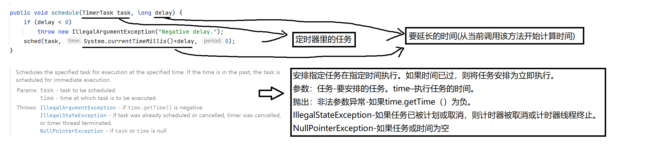 ①: TimerTask task: 定时器类里面安排的任务, 实现了Runnable接口, 说明需要重写 run 方法