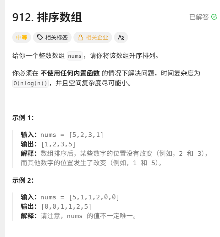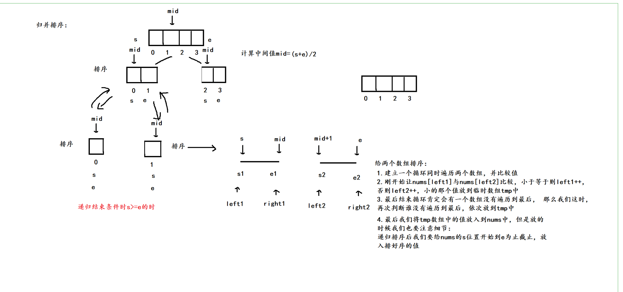 // 递归完成后, 给两个数组排序(数组并不是真实数组,而是可以看成两个数组)