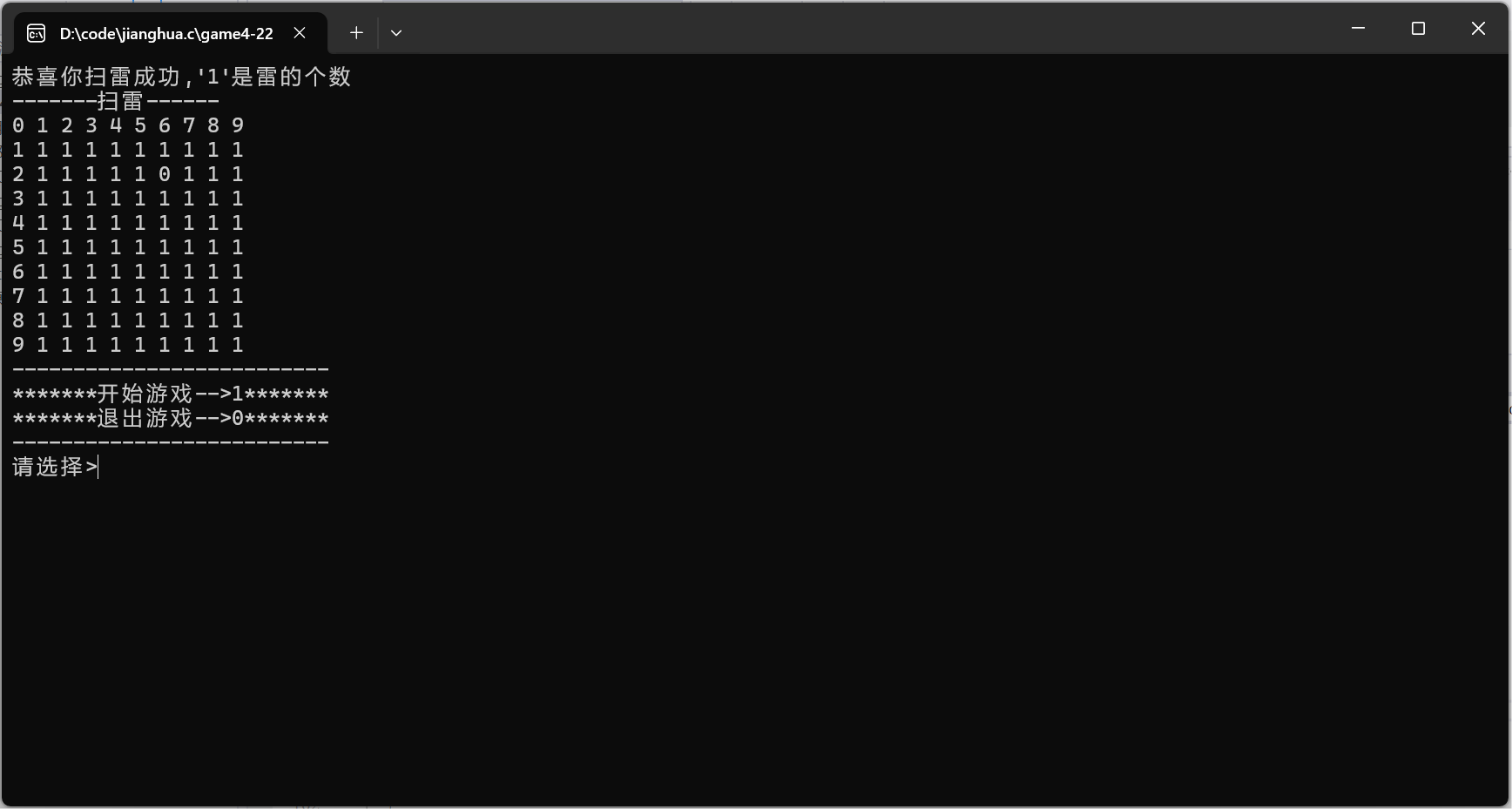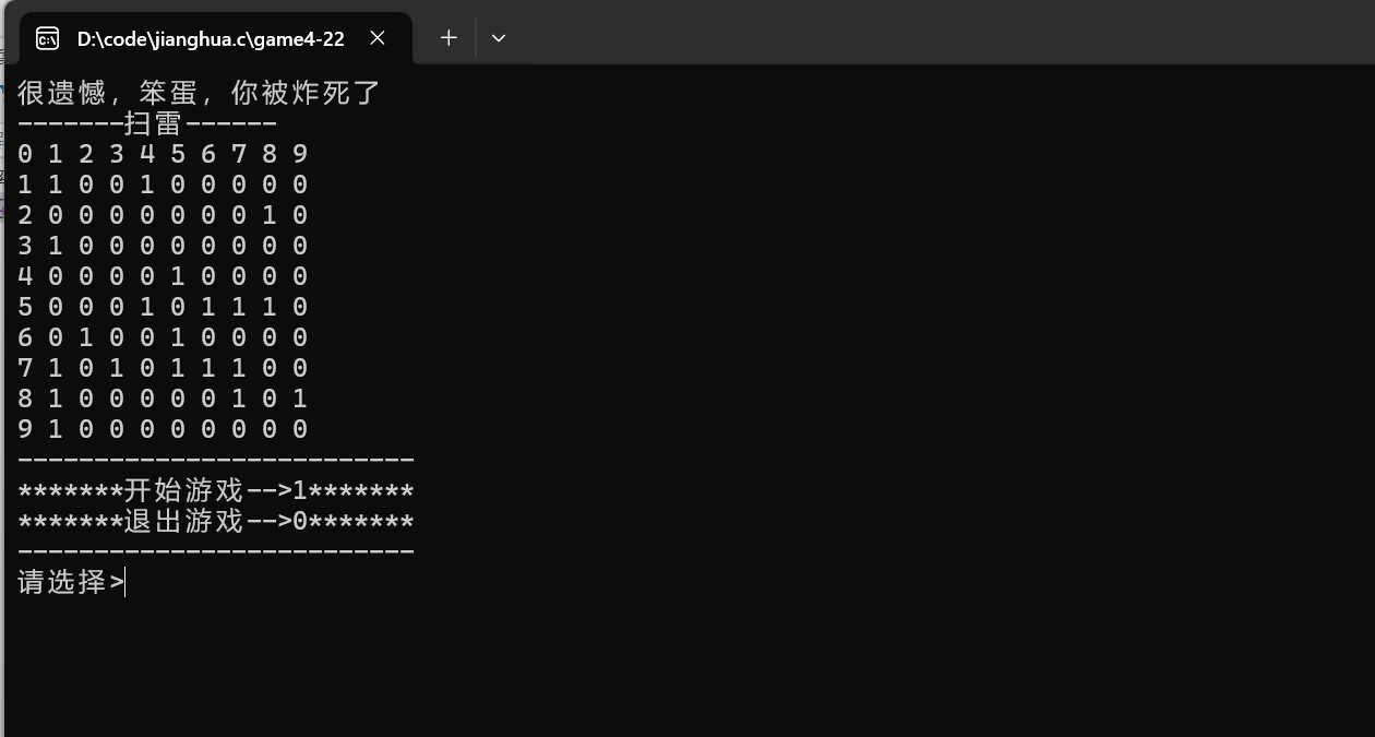 玩家碰到雷即是被炸死,退出循环,跳到菜单部分