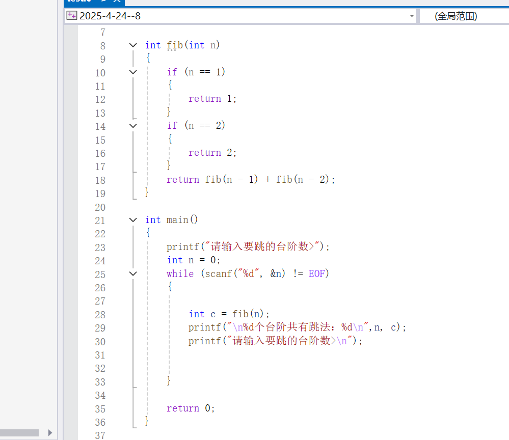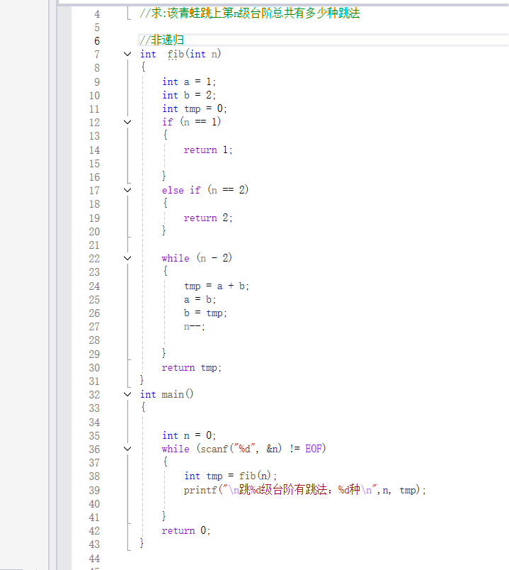 -->n = 1时有一种跳法:一次跳一个-->fib(1) = 1;