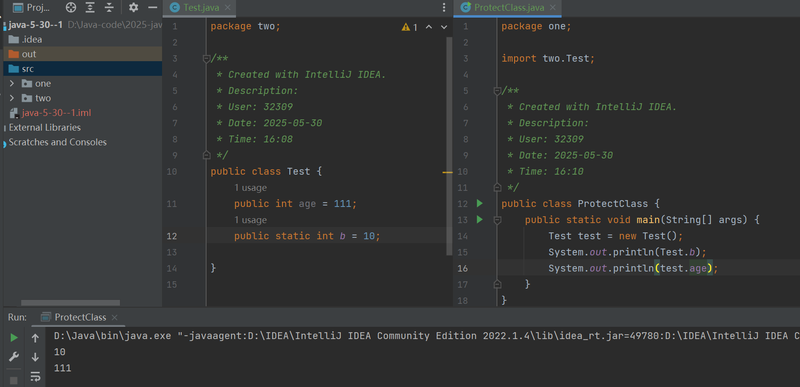 (3)public只能修饰与当前Java文件名字相同的类,且只能有一个public
