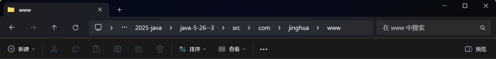 当你需要一次创建多个包且有上下级关系时,可以采用域名倒写加点号方式书写 例如:com.jinghua.www,它就会把www作为你可以书写的第一个包