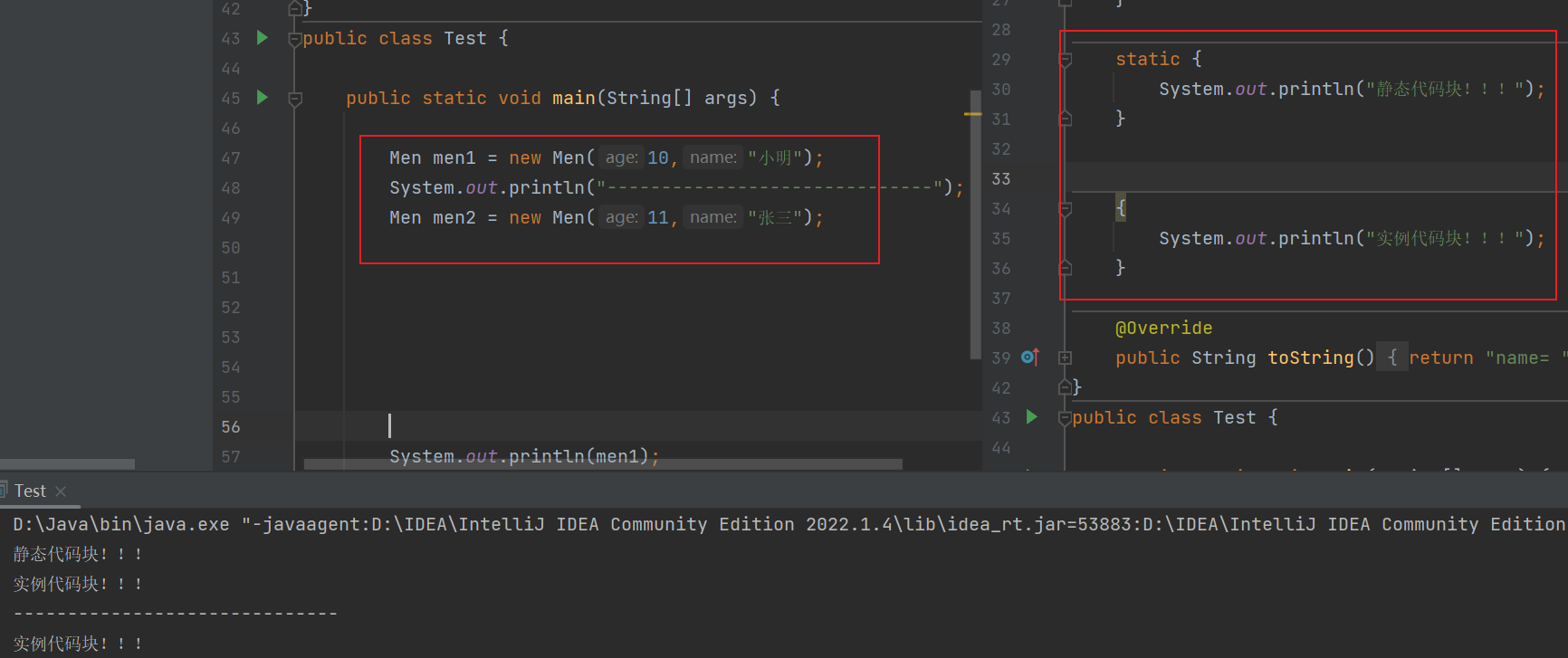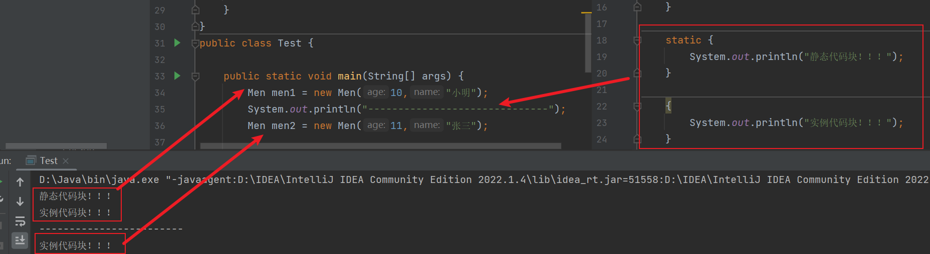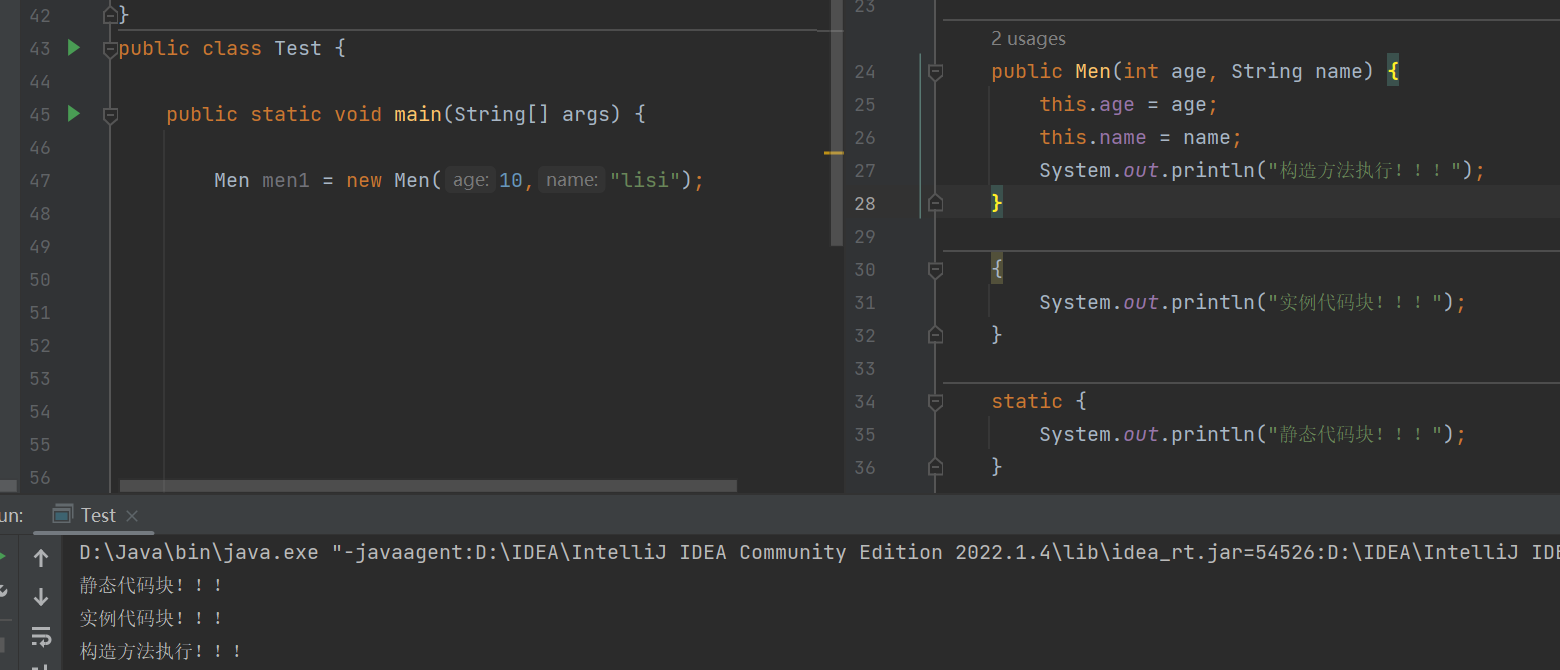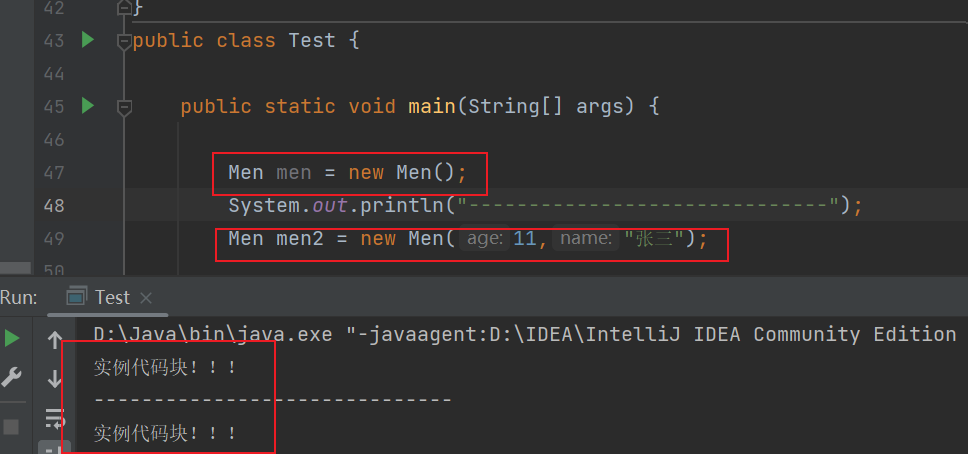 实例代码块也叫做构造代码块,意思是当你调用构造函数的时候,它也一定会被执行