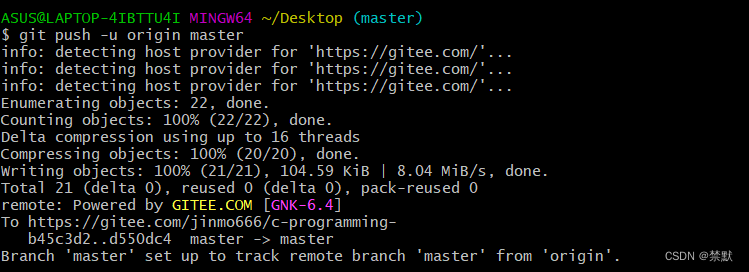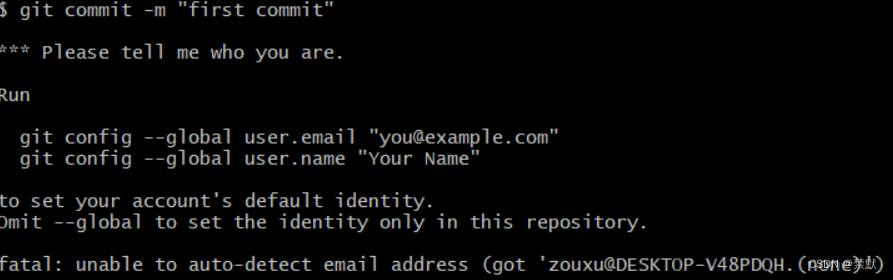 若出现下面情况,就说明没有绑定你的gitee邮箱和名字