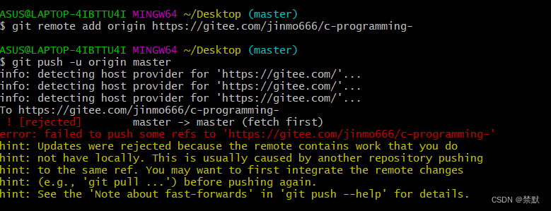 这个命令会将远程仓库的修改合并到你的本地仓库中。之后你可以再次尝试推送: