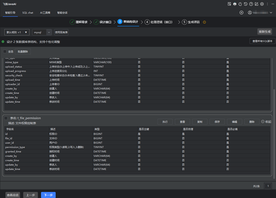 最绝的是数据库表结构设计环节!以前得对着接口一个个想字段:文件名、文件大小、上传状态、错误信息……还要考虑字段类型、主键自增,稍不注意就留下坑。飞算JavaAI支持自动生成表结构,选好MySQL或PostgreSQL数据库类型,系统直接生成对应的表和字段,id自增主键、file_name字符串类型、upload_progress百分比类型全都配置到位。而且能直接复制SQL脚本执行,或者保存成文件,不用手动写一行SQL。如果项目里有现成的数据库表,也能直接关联使用,省去了字段对照的麻烦。