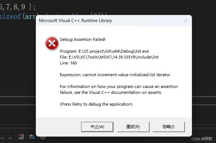 此处可将迭代器暂时理解成类似于指针,迭代器失效即迭代器所指向的节点的无效,即该节 点被删除了。因为list的底层结构为带头结点的双向循环链表,因此在list中进行插入时是不会导致list的迭代器失效的,只有在删除时才会失效,并且失效的只是指向被删除节点的迭代器,其他迭代器不会受到影响。