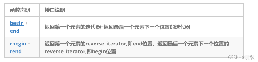 2. rbegin(end)与rend(begin)为反向迭代器,对迭代器执行++操作,迭代器向前移动