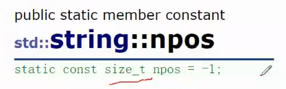 它是string类定义的一个静态对象,const size_t类型(也就是无符号整型,x86环境下是4字节,