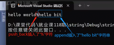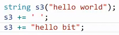 s2分别+= 字符‘ ’ 和字符串“hello bit” ,简洁明了。