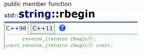 rebegin() 返回指向的最后一个字符 rend() 返回指向的第一个字符的前一个,使用: