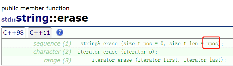 第二个参数pos很简单,就是位置的意思,第三个参数len = npos,就有意思了: