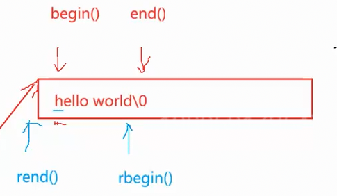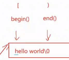 这 两个函数 是和 迭代器 一起用的,begin()指向第一个字符,end()指向最后一个字符的下一个字符,也就是 \0 位置,数学上