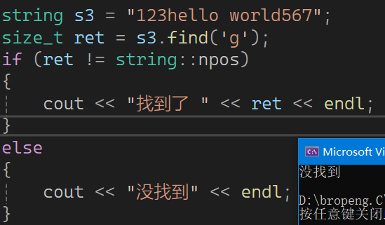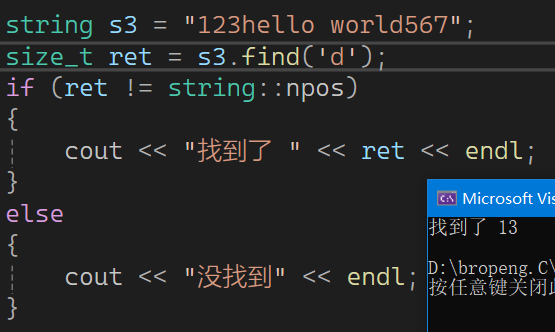 其中1和2是几乎一样的,就是在指定位置往后找字符串,找到后返回其索引,没找到返回npos。只是字符串格式不同,第三个十分不常用