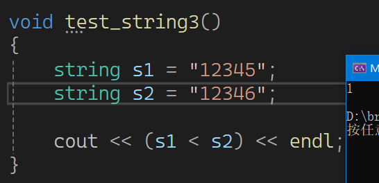 请注意:<< 运算优先级大于 < ,所以不加括号就错了(先运行:cout<<s1)。所以 对比时 尽量加上括号,不然可能会报错。